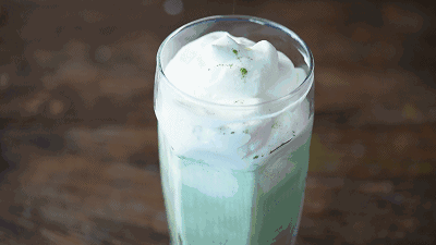 這(zhè)種聽(tīng)起來(lái)極其古怪的(de)混合飲料先以水(shuǐ)果茶和(hé)綠(lǜ)茶作(zuò)↑為(wèi)茶底,